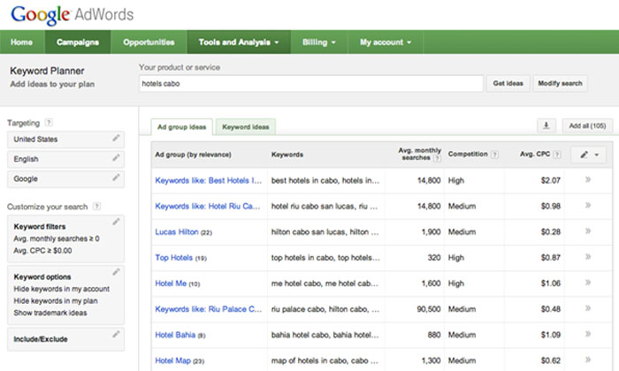 Most people guess the keywords to use. Often they guess wrong. There are many free tools around to see how many people use specific keywords in your location. We recommend the Google keyword Planner to get started. Just enter the keywords you believe are correct, then see the other suggestions. Filter to see your region and then check the suggestions. The more people searching for the keyword, generally the better traffic it can generate. Of course, our own keyword research tool also provides this service.