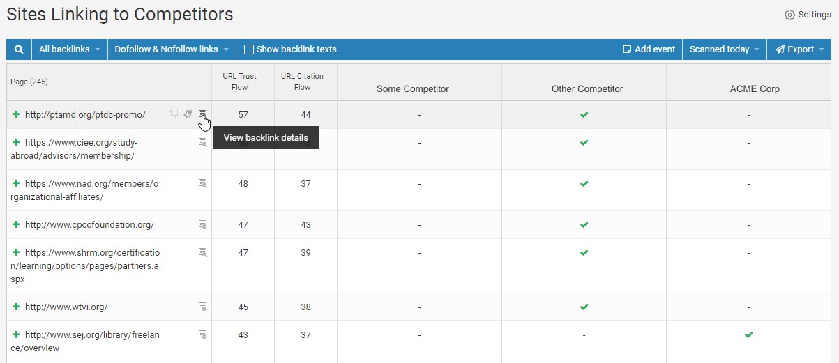 Spy on competitor backlinks